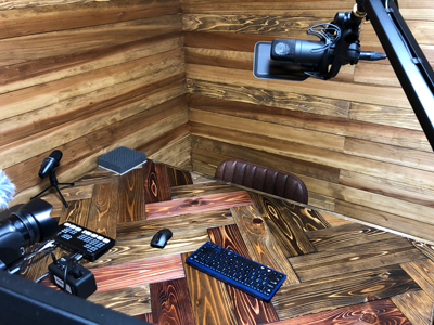 社内の会議室の片隅や、ワンルームマンション等、比較的狭いスペースで充分に使えるスタジオを構築することができます。